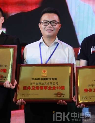 金牌衛(wèi)浴再度榮膺中國廚衛(wèi)百強之“整體衛(wèi)浴領軍企業(yè)10強”,金牌衛(wèi)浴總經(jīng)理曾小羚先生代表公司接受頒獎