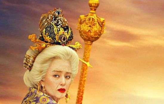 頭飾:頭戴珍珠寶石鐫刻頭冠,頭戴金龍鎏金釵,寶石的顏色也不似年輕時的流光璀璨,反而更顯沉穩(wěn)莊重。劇照中的武則天鶴發(fā)蒼顏而威嚴不改,目光滄桑而悲戚,歷史上唯一女帝波瀾壯闊的一生寫滿在這張飽經風霜的臉上。