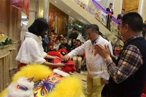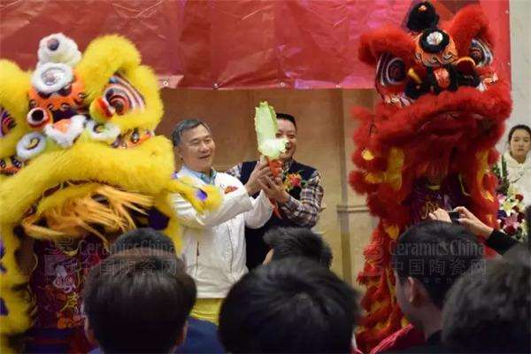 廣東歐雅企業(yè)董事長(zhǎng)霍炳祥、逸家建材有限公司董事長(zhǎng)鐘興共同為瑞獅點(diǎn)睛