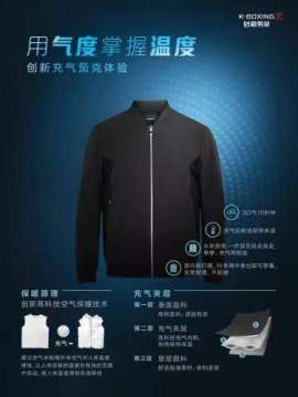 茄克軀干部位設計有可充氣內膽。平時,它是一件輕薄有型的茄克。一旦氣溫降低,你就可以打開隱蔽充氣閥――只需三口氣、十秒鐘,就能將它變成一件防風保暖的御寒服!