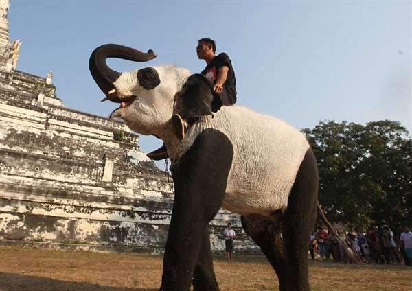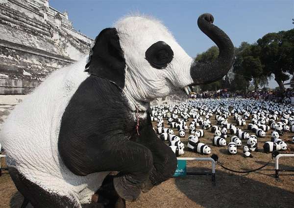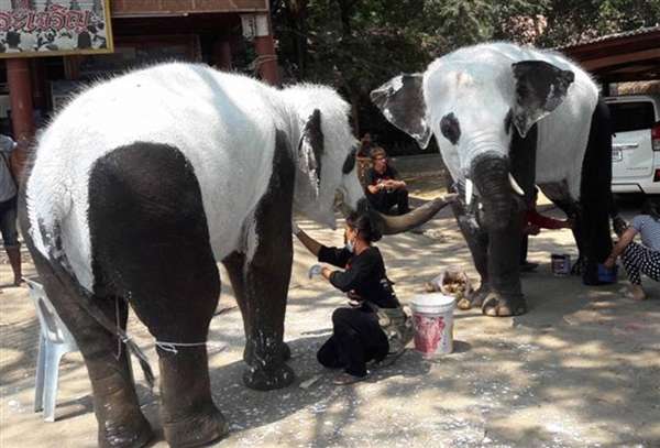 如何能把大象變成大熊貓?動物保護(hù)組織表示:只要刷上涂料就行了。