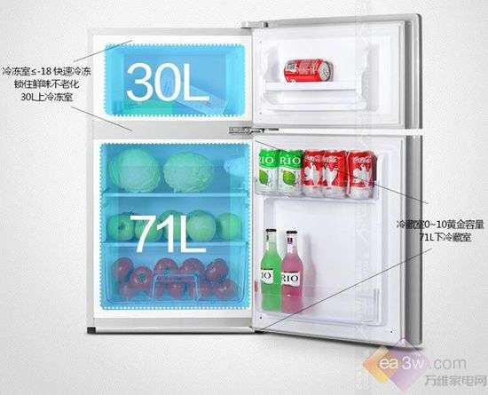 雖然冰箱只有101L容量,但是冰箱還是設(shè)有30L冷凍室,71L的下冷藏室,