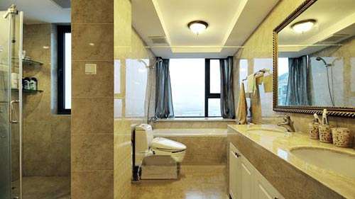 原有兩間衛(wèi)生間,都太小;考慮到房主人實(shí)際情況,建議其兩間打通并為一間,淋浴、浴缸、洗衣功能都有,而且還可以有舒適的雙位臺(tái)盆,空間也比較寬敞。