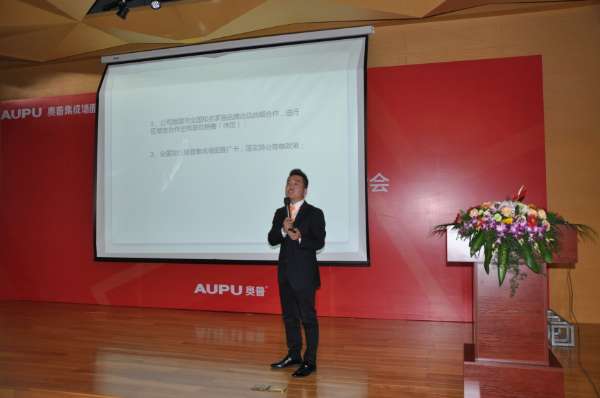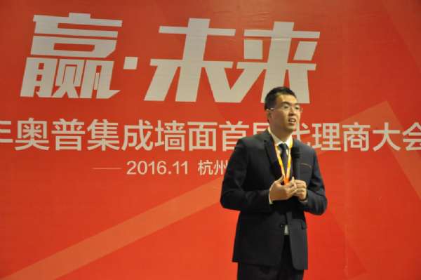 奧普營銷總監(jiān)方國樑向在座的各位代理商報告奧普集成墻面發(fā)展戰(zhàn)略