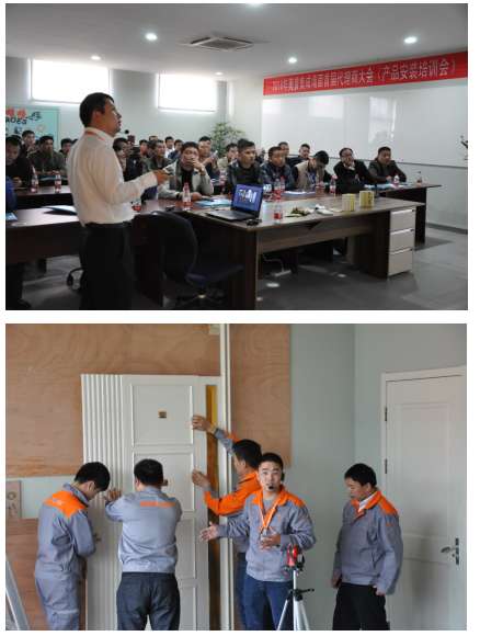 產(chǎn)品安裝培訓分會場,奧普會員中心的技術(shù)督導向前來學習的各位安裝技師傳授產(chǎn)品及安裝知識,并現(xiàn)場指導集成墻面安裝出樣