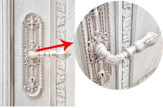門把手的搭配使這款木門的品位又提升了一級(jí),面板的鑄銅工藝展示出英國(guó)古典貴族氣質(zhì),也充滿了貴族象征意義。把手末端類似皇冠造型,莊嚴(yán)而又優(yōu)雅,握感舒適,拉開門鎖不費(fèi)勁兒。