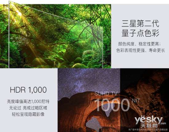 電視加入新一代量子點(diǎn)技術(shù),讓色彩表現(xiàn)力大幅提升,畫(huà)面色彩更接近于真實(shí)。為了讓畫(huà)質(zhì)更出眾,三星電視還加入了高達(dá)1000尼特亮度的HDR技術(shù),全面提高畫(huà)面亮度,無(wú)論是過(guò)暗區(qū)域還是過(guò)亮區(qū)域,都不會(huì)模糊一團(tuán),清晰細(xì)節(jié)肉眼可見(jiàn)。針對(duì)電視常出現(xiàn)反光的痛點(diǎn),三星UA65KS9800JXXZ加入了來(lái)自于蛾眼仿生的深黑減反技術(shù),通過(guò)表面的納米級(jí)突觸減少畫(huà)面反射帶來(lái)的不適觀感。此外,電視還采用10Bit面板,色彩表現(xiàn)更準(zhǔn)確,每種色彩間的過(guò)度更圓滑,避免產(chǎn)生色塊的現(xiàn)象。