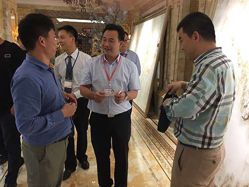 業(yè)之峰考察團(tuán)一行來到冠珠展廳,在品牌領(lǐng)導(dǎo)的陪同講解下,考察團(tuán)對冠珠展廳展示的瓷磚產(chǎn)品贊不絕口,表示了對冠珠產(chǎn)品的高度認(rèn)同。鄧總、彭總分別向考察團(tuán)介紹了各類產(chǎn)品的生產(chǎn)工藝與應(yīng)用特點(diǎn),讓考察團(tuán)一行對冠珠全系列的產(chǎn)品有了深入的了解。