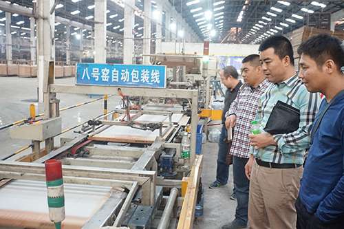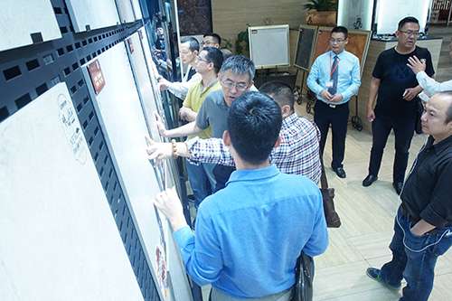 集團(tuán)股份有限公司總裁姚鳳鳴攜全國12個大區(qū)總經(jīng)理組成考察團(tuán),走進(jìn)了冠珠總部展廳,深入了解冠珠陶瓷強(qiáng)大的生產(chǎn)制造能力、產(chǎn)品特點(diǎn)以及應(yīng)用效果,開啟了“整合優(yōu)秀建材供應(yīng)鏈”的考察之旅。冠珠品牌總經(jīng)理鄧勇、副總經(jīng)理彭俊泉以及各大區(qū)經(jīng)理熱情接待了考察團(tuán)一行。