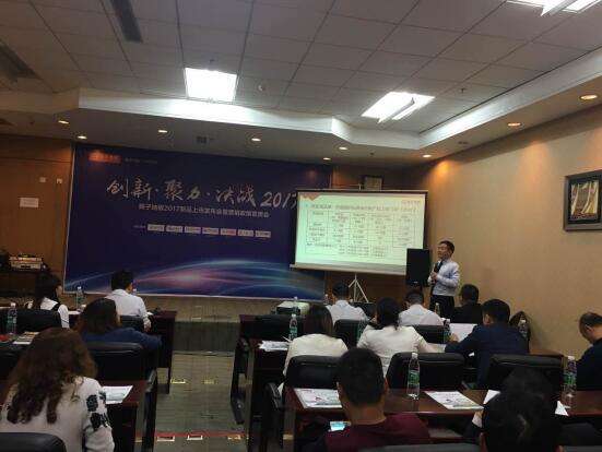 揚(yáng)子地板總部營(yíng)銷中心銷售管理部副部長(zhǎng)鄭小龍先生做《2017年新產(chǎn)品上市介紹》的主題演講。
