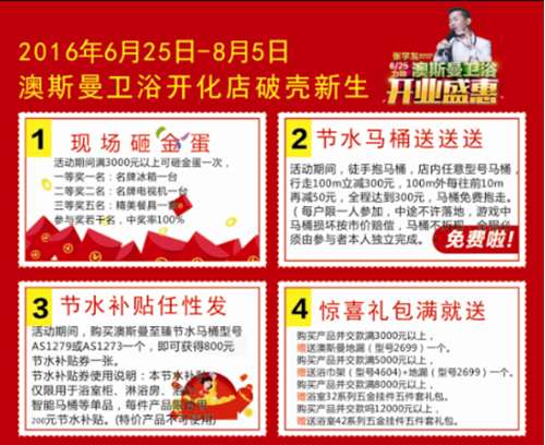 個月的籌備,到今天的開業(yè)盛典成功舉辦,得到廣大消費者的支持,取得良好的市場反響,無疑是為澳斯曼的未來打下了市場基礎(chǔ)。日后,開化澳斯曼將與公司并肩前行,踐行“節(jié)水、品質(zhì)”的品牌承諾,為消費者帶來更多高品質(zhì)的節(jié)水衛(wèi)浴。
