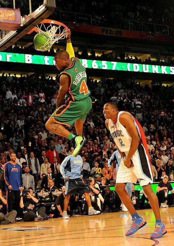 他的身高只有170厘米,他是三屆扣籃大賽冠軍,內(nèi)特-羅賓遜彈跳高度為112厘米,難以想象170的他能夠隔扣兩米多的中鋒