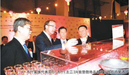慶典上,舊金山市長李孟賢發(fā)表致辭:“1年前的今天,我們相約舊金山,在這里歡慶茅臺(tái)金獎(jiǎng)百年的輝煌;今天,我們?cè)俣染凼祝瑧c賀‘貴州茅臺(tái)日’一周年,續(xù)寫中美友好交往的新篇章。值此良宵,回望茅臺(tái)與舊金山百年歷史與情誼,衷心祝愿茅臺(tái)與舊金山傳承百年前巴拿馬萬國博覽會(huì)的精神,攜手共創(chuàng)下一個(gè)百年新輝煌!”他認(rèn)為,茅臺(tái)不只是一種美酒,還是具有標(biāo)志意義的特殊品牌,希望今后每年都可舉辦各種形式的“茅臺(tái)日”慶祝活動(dòng)。