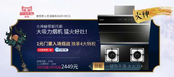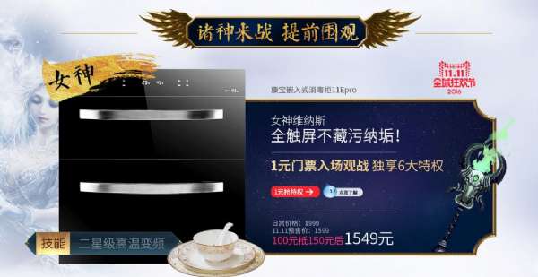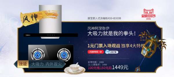 10月10日,康寶電器在天貓康寶旗艦店(https://canbo.tmall.com)置換首頁,以“雅典娜的預(yù)言”為主標(biāo)題,“雙11決戰(zhàn) 搶先預(yù)售”為副標(biāo)題,為我們鋪展出一則蓬勃大氣的傳說畫卷。