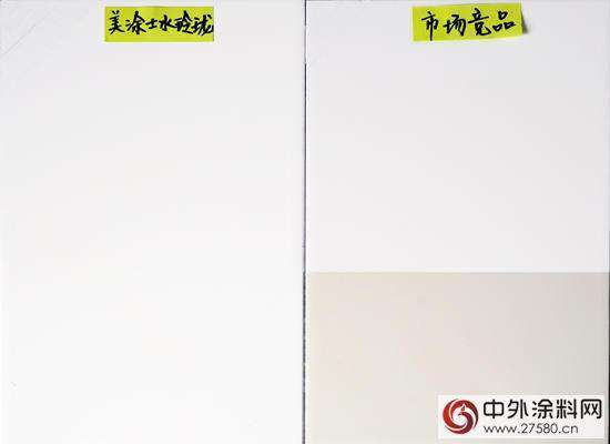 通過照片,我們可以觀察到,美涂士水玲瓏水性木器漆漆膜比較通透,可以清楚的看到對面的場景,但市場競品的漆膜則比較模糊。