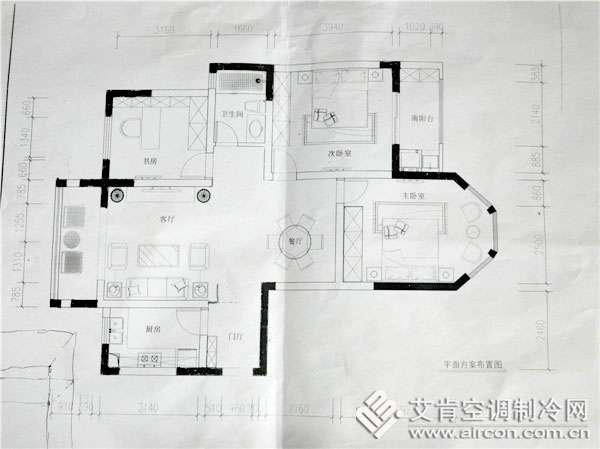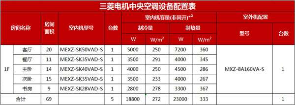 菱耀系列家用版多聯(lián)分體式空調(diào)采用獨特的分歧箱結(jié)構(gòu),安裝維護更加簡易,完全滿足用戶對寧靜舒適生活的要求。該項目采用了6P一拖五的空調(diào)系統(tǒng)。根據(jù)使用面積客廳和餐廳分別采用了5000W和3500W的室內(nèi)機;主臥、次臥和書房則是分別使用了4000W、3500W、2800W的室內(nèi)機。室外機容量為15.5kW,超配比約為21%。超配比一般不能大于30%,否則在室內(nèi)機運行負荷較大時,室外機無法滿足制冷制熱要求而且會產(chǎn)生巨大噪音。