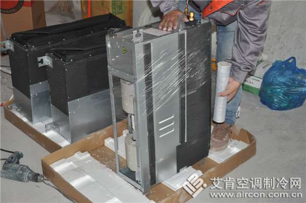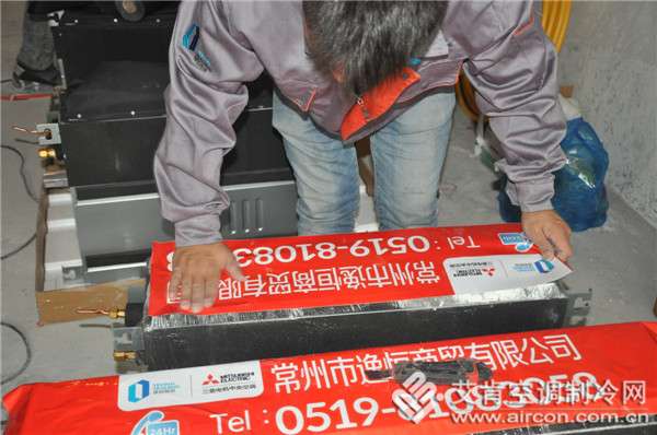 之后,施工員在機器外面包上了一層保鮮膜。這樣的保護也保證了室內(nèi)機內(nèi)部在施工過程中的清潔度。最后,貼上了常州市逸恒商貿(mào)有限公司特制的風口貼,機器的包裝改造到此結(jié)束。