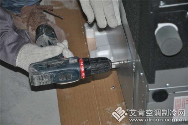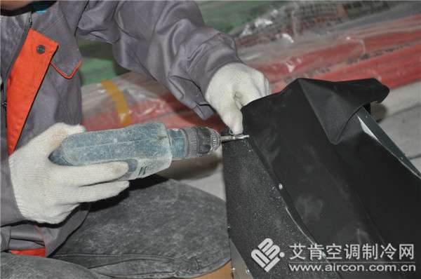 由于室內(nèi)機出廠默認為后回風,但是在家裝中通常采用側(cè)送下回的送回風方式,所以施工員需要將后回風改裝為下回風。送風口出需要加裝帆布軟接,一方面封住送風口避免在施工時灰塵的進入影響使用效果,另一方面便于后期和百葉風口的連接。