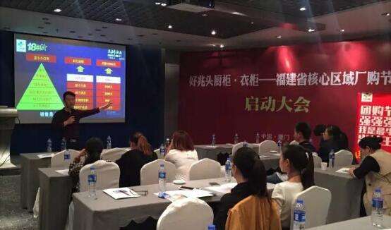 10月10日,好兆頭廚柜·衣柜廠購節(jié)活動福建站啟動大會在廈門國際會展中心酒店隆重召開,好兆頭櫥柜董事長陳加棟、營銷總監(jiān)周總出席了會議,聯(lián)盟單位龍發(fā)裝飾廈門負(fù)責(zé)人魏總,好兆頭櫥柜福州、泉州、廈門、龍巖、漳州區(qū)域經(jīng)銷商代表、店長及設(shè)計師齊聚一堂,共謀家裝大業(yè),打響黃金十月廠購戰(zhàn)役!