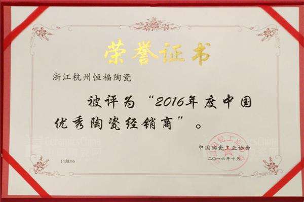 在恒福陶瓷成功的背后,有許多優(yōu)質經(jīng)銷商與之合作共贏的精彩故事在業(yè)內廣泛傳播,品牌與經(jīng)銷商在發(fā)展的路上共同成長,最終雙方都獲得了事業(yè)的極大提升,讓品牌在市場扎下了根并讓企業(yè)快速壯大,而經(jīng)銷商在此過程中也成為經(jīng)銷商行列的區(qū)域王者。此次優(yōu)秀經(jīng)銷商評選經(jīng)過層層角逐和篩選,恒福陶瓷十位經(jīng)銷商憑借著專賣店建設好、公司化運作佳、地區(qū)品牌影響力大、渠道建設完善、服務精細化等良好表現(xiàn)贏得了消費者的贊譽與信任,并得到了陶瓷協(xié)會領導的認可,被授予“2016年度中國優(yōu)秀陶瓷經(jīng)銷商”稱號,可謂是實至名歸。