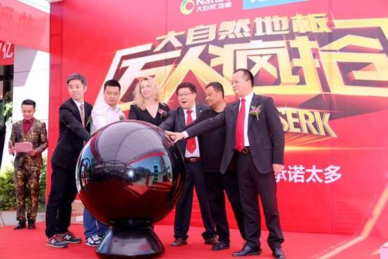 “萬人瘋搶”活動中,中國地板控股有限公司執行董事、中國區總裁佘建彬先生,中國地板控股有限公司地板事業部常務副總經理、銷售中心總經理易鳴先生,中國地板控股有限公司進口地板常務副總經理秦陽光先生,中國地板控股有限公司柯拉尼櫥柜總經理代光華先生,中國地板控股有限公司輔料事業部總經理郭誠先生,中國地板控股有限公司地板事業部、產品中心總經理謝櫻飛先生,以及華帝廚電王憲先生出席活動現場并在舞臺上開啟了此次活動的啟動儀式。