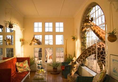 長(zhǎng)頸鹿山莊最具特色的是在莊園內(nèi)擁有眾多的長(zhǎng)頸鹿——羅斯柴爾德長(zhǎng)頸鹿,他們是世界上最稀少的長(zhǎng)頸鹿品種之一。游客到來(lái)時(shí),他們自由自在地在莊園內(nèi)行走,游客不僅能與長(zhǎng)頸鹿共進(jìn)早餐,還能站在二樓臥室地板上與長(zhǎng)頸鹿來(lái)一次親密的接觸。