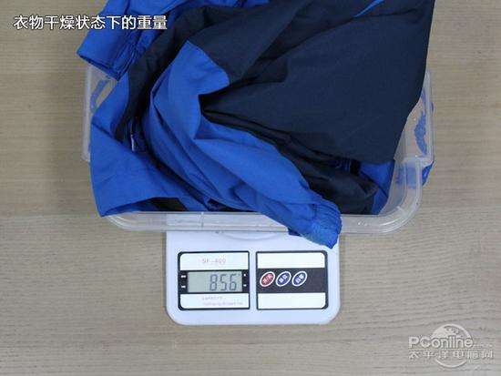 為了體驗一下烘干的性能,筆者這次找來一件衣物由各種混合材質(zhì)組成的沖鋒衣來進行測試,衣物在干燥的狀態(tài)下,重量是856克。