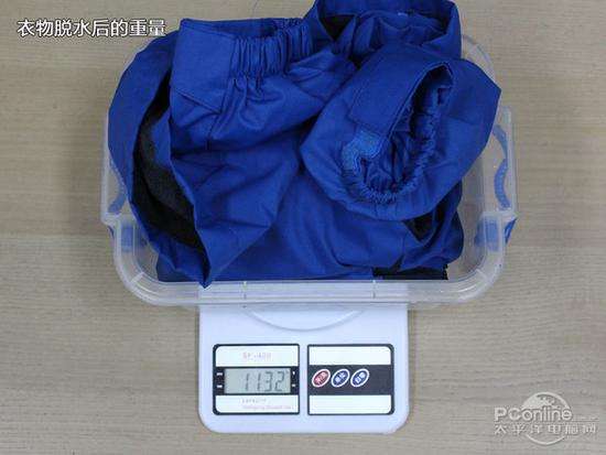 而衣物在洗衣結(jié)束,經(jīng)過脫水后的重量為1132克,烘干測試也將以這件脫水后的衣物來進行。