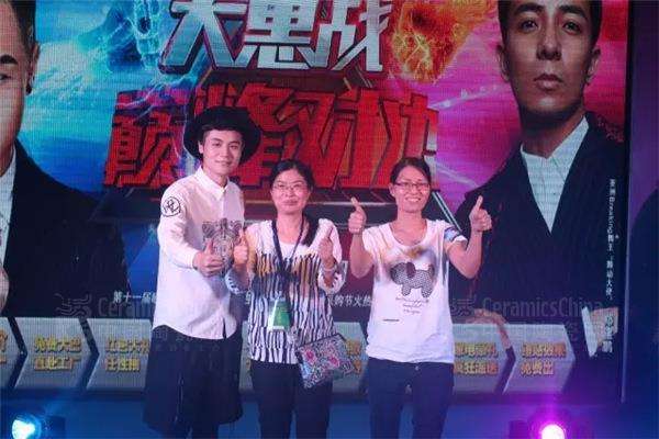 歐美陶瓷副總經(jīng)理肖穎輝、歐美陶瓷仿古磚事業(yè)部總經(jīng)理曾燦安為獲一等獎(jiǎng)幸運(yùn)者頒獎(jiǎng)