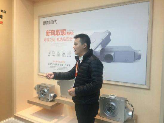 奧普衛(wèi)廚電商管理部經(jīng)理汪紀(jì)純在為大家講解奧普衛(wèi)廚第一代、第二代、第三代新風(fēng)取暖系統(tǒng)的產(chǎn)品性能與差異。