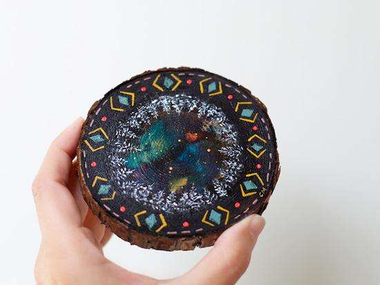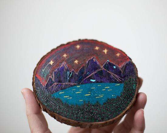 之美”;而富有想象力的配色與細膩獨特的筆觸落在松木上,給我們展現了一個童話般的微縮世界。