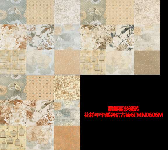 現(xiàn)在小編就帶大家一起來(lái)品鑒這款花樣年華系列(編號(hào):6FMN0606M)瓷質(zhì)仿古磚吧!