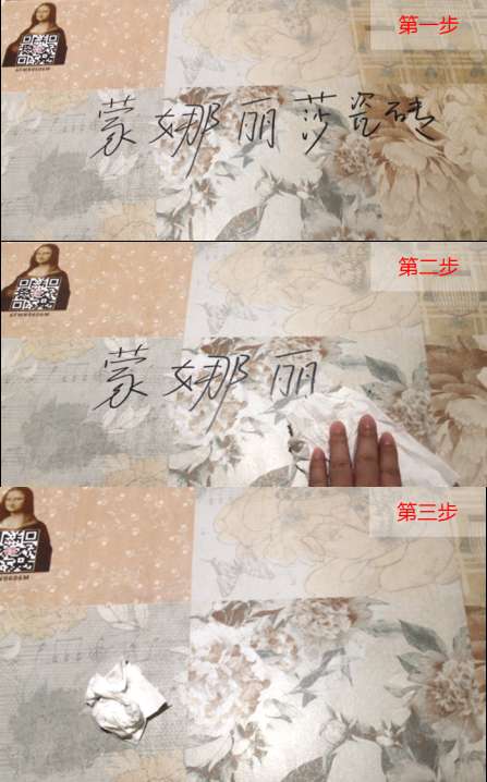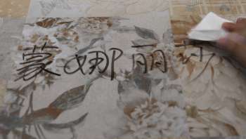 測(cè)評(píng)人員用油性筆在花樣年華系列仿古磚上寫(xiě)“蒙娜麗莎瓷磚”字樣,靜待片刻后用餐巾紙擦除,可見(jiàn)瓷磚上一點(diǎn)痕跡也沒(méi)留下,光潔如初,證明其防污性能良好。