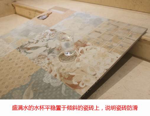 蒙娜麗莎花樣年華系列表層柔光防污釉雙重保護(hù),其防污防滑能力卓越是其最大的產(chǎn)品特色。評(píng)測(cè)人員將一空杯子放置在磚面,上下擺動(dòng),空杯子完全沒(méi)有下滑,對(duì)日常行走活動(dòng)都起到了保護(hù)作用。特別是家中在易摔倒人群(老人、小孩、肥胖人群等)的空間中,花樣年華系列絕對(duì)是為其量身定制的一款瓷磚產(chǎn)品。