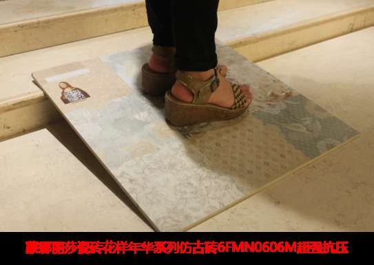 ,瓷磚如果承重能力差,則容易破裂損壞,影響家居環(huán)境的美觀(guān)。小編對(duì)蒙娜麗莎花樣年華系列的抗壓性進(jìn)行了相關(guān)測(cè)試。將瓷磚斜放20度,讓一名女子站在瓷磚上踩踏跳躍,瓷磚都沒(méi)有絲毫的損壞或變形。
