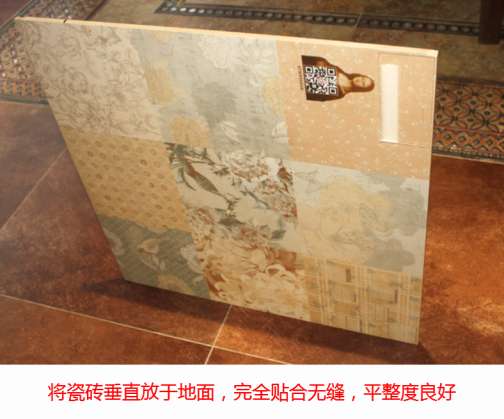 現(xiàn)場(chǎng)評(píng)測(cè)人員通過(guò)肉眼觀(guān)察,發(fā)現(xiàn)該瓷磚平面十分平整,沒(méi)有任何凹凸不平和碎料毛渣。經(jīng)過(guò)小編的實(shí)地測(cè)試,瓷磚不需要任何支撐,都可以穩(wěn)妥地豎立在地面。可見(jiàn),蒙娜麗莎花樣年華系列瓷磚平整度相當(dāng)好,不會(huì)影響鋪貼的美觀(guān)以及日常的使用。