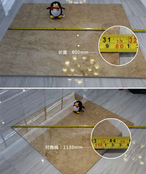 選購瓷磚不僅要關(guān)注產(chǎn)品“顏值”,還需關(guān)注產(chǎn)品質(zhì)量,而瓷磚的尺寸測量無可避免。因此,小編通過尺子對這款羅馬御石瓷磚測量發(fā)現(xiàn),該瓷磚規(guī)格符合標(biāo)準(zhǔn),長寬尺寸為800*800mm,厚度為11mm,對角線為1130mm,符合國家標(biāo)準(zhǔn)。