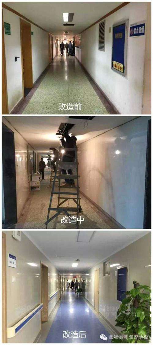 陜西省人民醫(yī)院使用超過40,000平方米的蒙娜麗莎陶瓷薄板進行室內(nèi)墻面改造,改造后的室內(nèi)墻面接駁少、縫隙小,進一步降低細菌滋生的幾率,為醫(yī)院打造了明亮、抗菌、裝飾性強的良好空間環(huán)境。