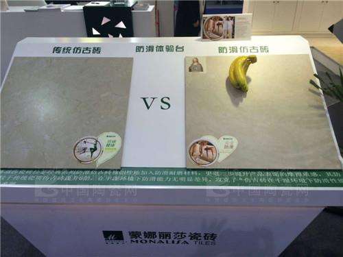 瓷磚花紋可以做到很美,表面效果可以很逼真,但對于老齡人來說,最重要就是防滑。早在2013年,蒙娜麗莎集團就針對老齡化人群的特殊需求進行開發(fā),推出了摩擦系數(shù)高于0.6以上的功能性防滑瓷磚——拉菲經(jīng)典系列防滑仿古磚,集裝飾材料與使用功能于一體的新型陶瓷,滿足老齡化社會的需求。