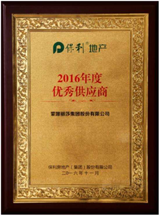 在供應商頒獎典禮上,蒙娜麗莎集團憑借著優(yōu)異的產(chǎn)品質量、強大的研發(fā)實力、無可比擬的施工優(yōu)勢、完美的配套服務等,榮獲保利地產(chǎn)2016年度優(yōu)秀供應商稱號,是保利地產(chǎn)評出的極少數(shù)幾家優(yōu)秀供應商之一,更是瓷磚行業(yè)唯一的一家。