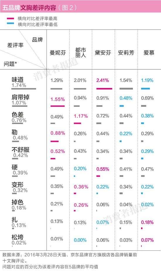 味道、肩帶、色差是三大差評(píng)集中區(qū)域
