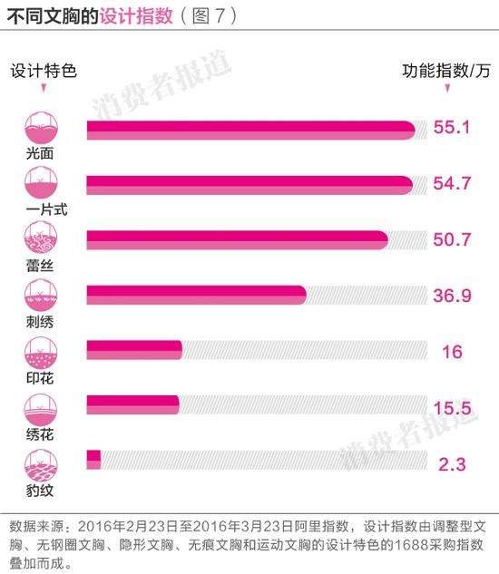 而在設(shè)計(jì)特色上,光面、一片式和蕾絲文胸是消費(fèi)市場(chǎng)一線梯隊(duì)。(如圖7)