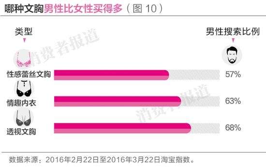 和其他文胸相比,男同胞果然更喜歡給女性買(mǎi)性感蕾絲文胸、情趣內(nèi)衣、透視文胸這些具備調(diào)情功能的文胸。(如圖10)