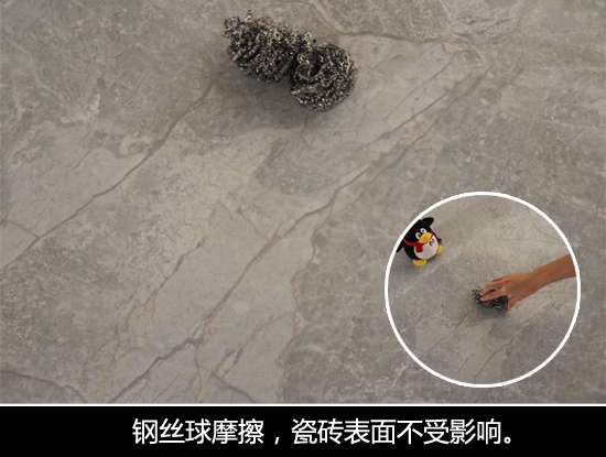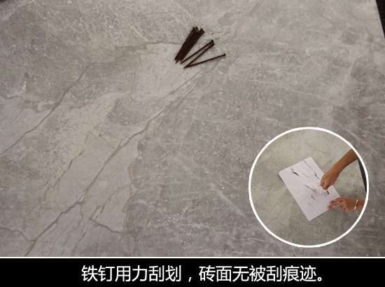 瓷磚耐磨性差,使用一段時(shí)間后瓷磚表面就容易出現(xiàn)很多劃痕,從而影響視覺(jué)效果。小編為檢測(cè)瓷磚的耐磨度,采用了鋼絲球和鐵釘刮劃來(lái)進(jìn)行測(cè)試。
