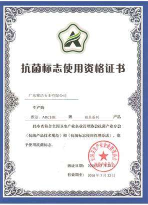 抗菌產業(yè)協(xié)會授權雅潔五金使用抗菌標志