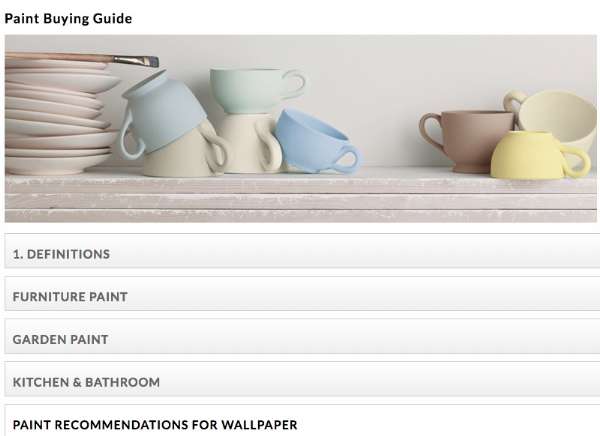 比如對于油漆這個品類,Laura Ashley 會從它不同的種類和顏色的選擇,到不同物品的刷漆步驟都進行近似于教程式的解說和介紹。