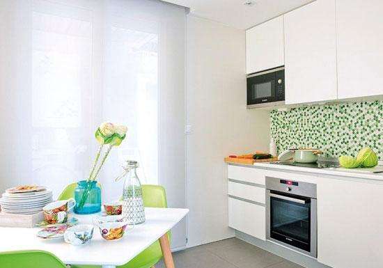 看到這樣的廚房你是否有眼前一亮的感覺呢,果綠色的點綴讓這個空間看起來輕盈時尚,廚房本來就是制造美食的空間,看到這樣的色彩搭配大家可能會更有食欲一些。