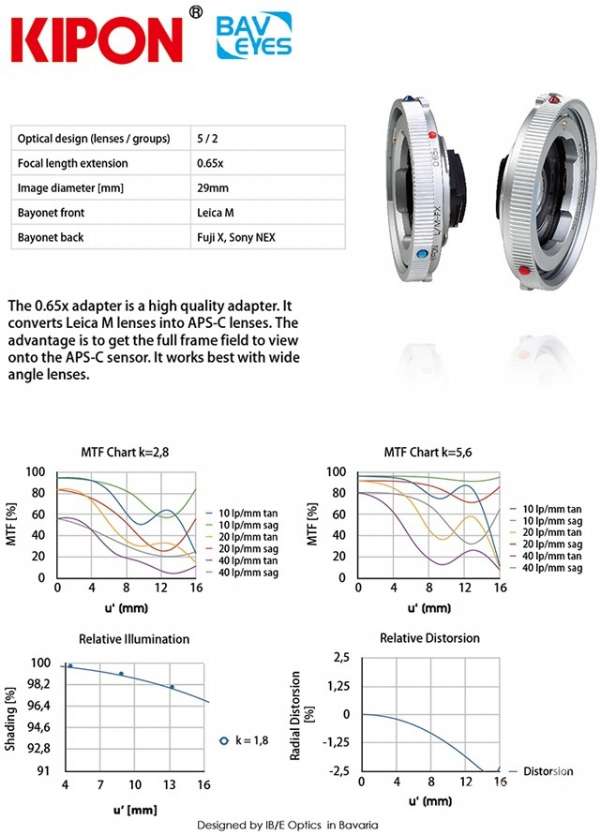 據(jù)悉,新款減焦鏡的光學(xué)設(shè)計(jì)由Kipon的德國合作伙伴IB/E負(fù)責(zé),其采用5片2組的鏡頭結(jié)構(gòu)。值得一提的是,此次發(fā)布的減焦鏡的表面還鑲嵌有施華洛世奇水晶。