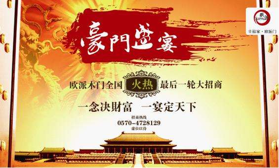 據(jù)悉,全球木門制造專家歐派木門2012年度“豪門宴——華東四省同步聯(lián)動招商會”將于8月8日在歐派門業(yè)總部浙江江山舉行。據(jù)悉,本輪招商將是歐派門業(yè)2012年的最后一輪招商,同時此輪造富行動將率先在浙江、福建、安徽、江西華東四省啟動。