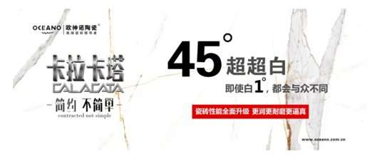 在今年9月歐神諾陶瓷推出了全新高端系列產(chǎn)品——?dú)W神諾45°超超白,卡拉卡塔大理石紋理拋釉磚,瓷磚性能全面升級(jí),成為高端瓷磚新標(biāo)準(zhǔn)。
